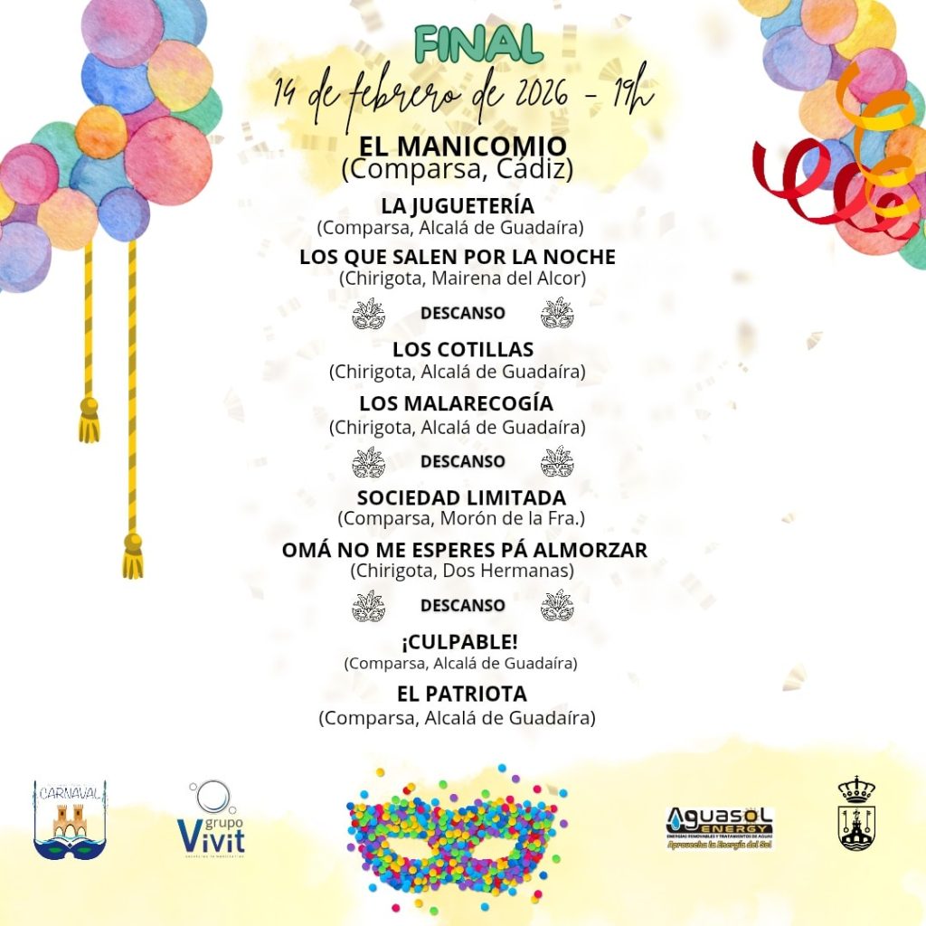 Noticias Orden definitivo Final Concurso 2026 Publicada por carnavaldealcala en 13 febrero, 2026 Relacionado